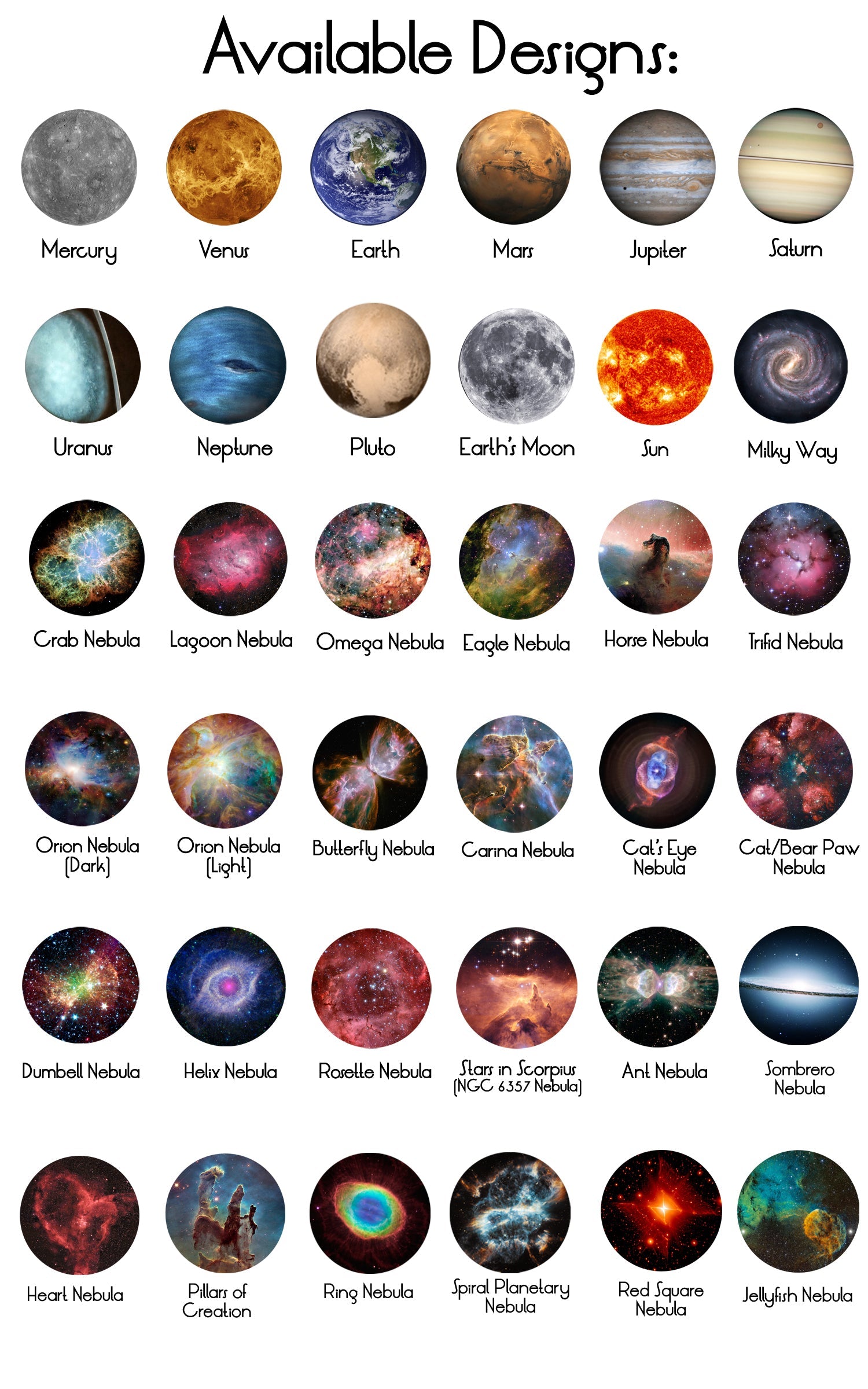 ★ Please make your cosmic image selections using the drop down menu before proceeding to checkout.
